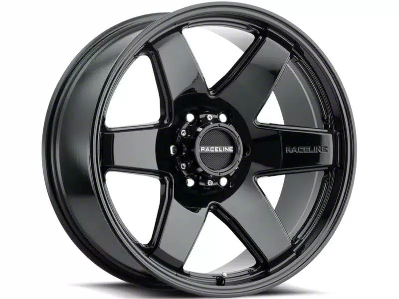 Raceline Addict Gloss Black 6-Lug Wheel; 18x9; -12mm Offset. The Raceline Addict Gloss Black 6-Lug Wheel offers a striking balance of style and refinement. Its unique design accentuates the vehicle's aesthetic, while the premium construction underscores its robust nature. This wheel is a perfect choice for those seeking both elegance and a strong visual statement.