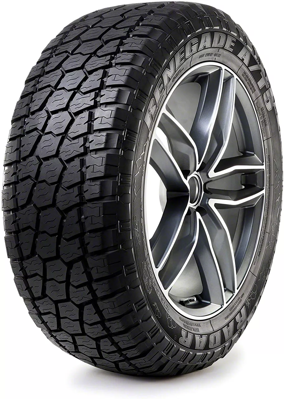 For On and Off-Road Use. This Radar Tires Renegade A/T-5 Tire shows its flexibility by providing a comfortable on-road driving experience while also giving maximum traction off the road. Working well with stock and lifted vehicles, this tire is versatile and tough.