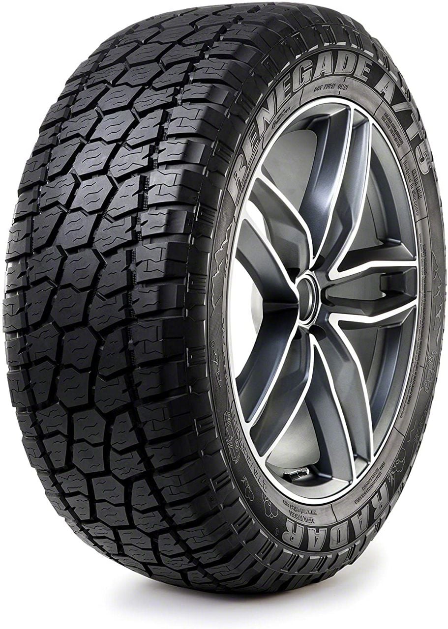 Readies the Truck for Extreme Off-Roading. Complete your Chevrolet Silverado 2500 HD’s off-road-ready set up by installing a set of this Radar Tires Renegade A/T-5 Tire. The tire’s brawny construction and design are made to handle the demands of the rough off-road terrains, keeping your drives safe and stable no matter how rugged the trails get.