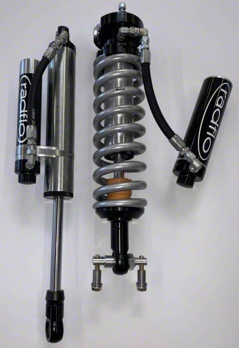 Combatting Thermal Degradation. The incorporation of a remote reservoir in the coil-overs in this Radflo OE Replacement 2.5 Front Coil-Over Kit is a crucial design feature that addresses the inherent challenge of heat buildup during prolonged and intense off-road use. By separating the oil reservoir from the main shock body, the design effectively increases both oil capacity and surface area. This expanded capacity allows for a greater volume of oil to circulate, while the increased surface area promotes faster and more efficient heat dissipation.