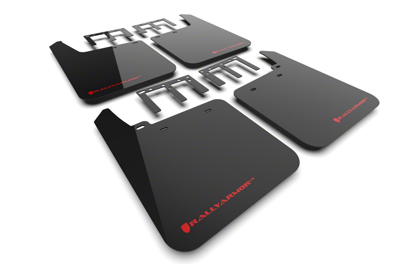 Construction and Appearance. Crafted from premium urethane, these mud flaps are built to withstand tough road conditions. The matte black finish is complemented by a dark red Rally Armor logo, offering a stylish contrast that enhances your truck’s rugged aesthetic. Additionally, their UV-resistant construction ensures long-lasting durability and protection.