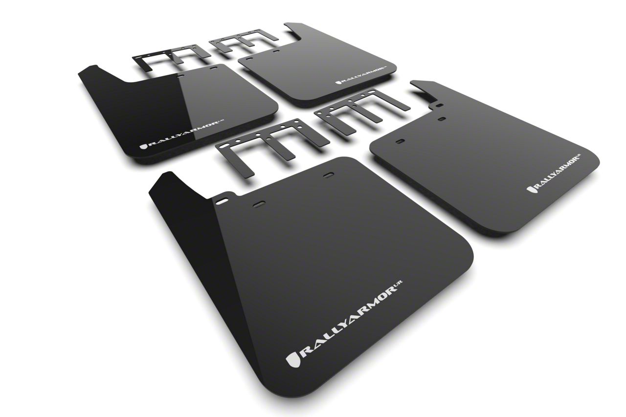 Rally Armor Black Mud Flaps with White Logo; Front and Rear (19-26 Sierra 1500 AT4)Find parts that fit my vehicle