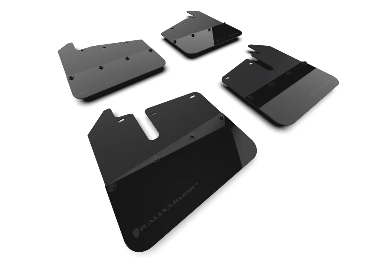 Durable Protection. The Rally Armor UR Mud Flaps with Metallic Black Logo offer superior protection against road debris for both front and rear pairs. These mud flaps are designed to fit various applications, providing reliable defense for your vehicle's undercarriage.