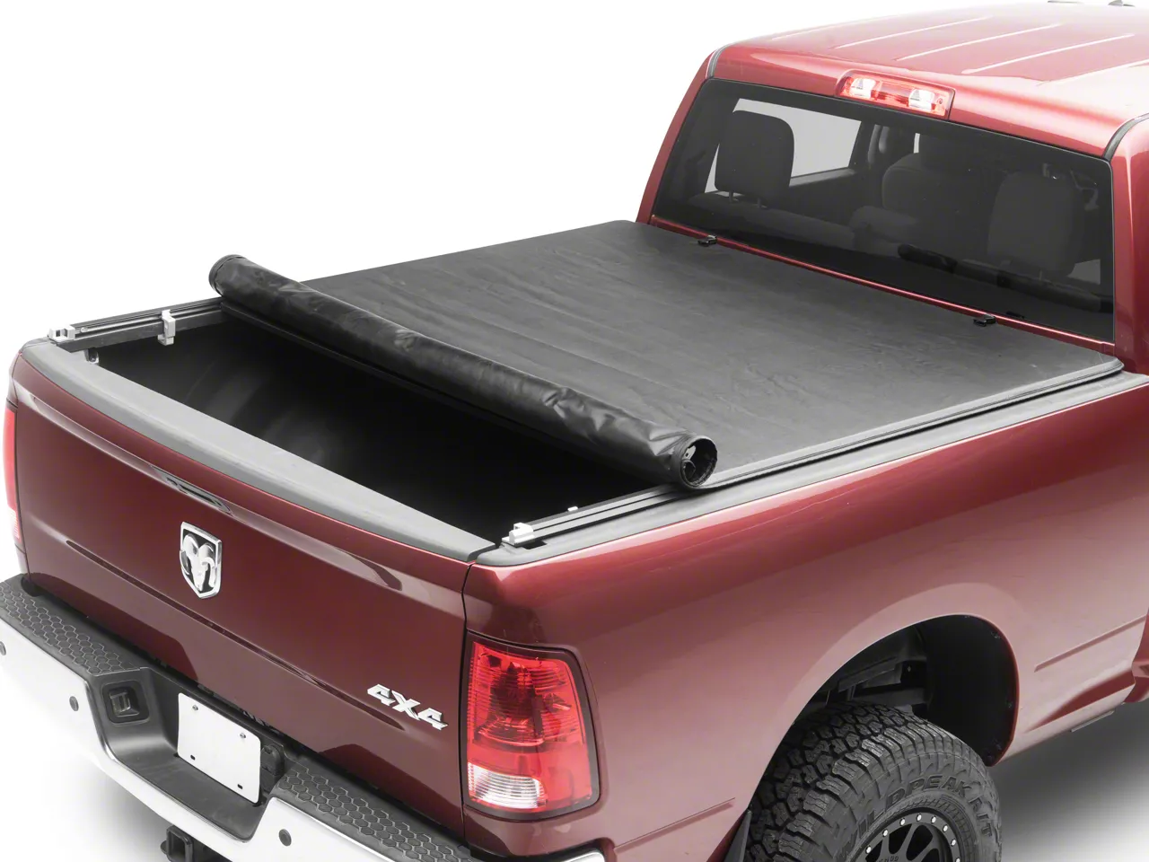 Quality Construction. The RAM Licensed by TruShield Locking Roll-Up Tonneau Cover features a clamp-on frame that is made from heavy duty aluminum for superior strength and lightweight. The soft top covering is constructed from a weather resistant, leather grained vinyl coated polyester fabric that can withstand the test of time without fading, making sure your truck always looks good.