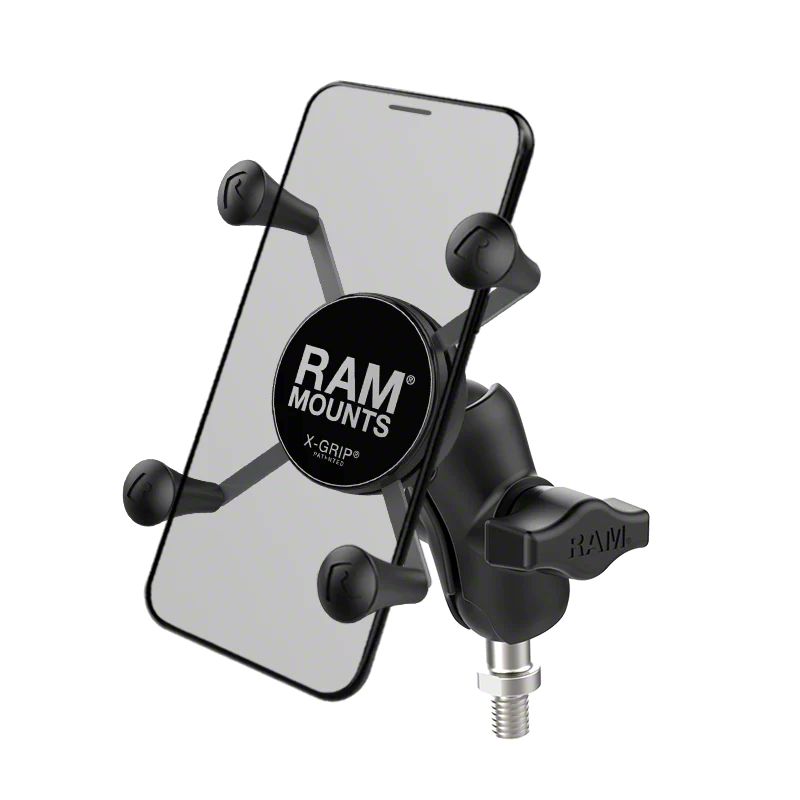 Secure and Adaptable Mount. The RAM Mounts X-Grip Phone Mount offers a universal solution for safely holding your handheld devices while on the road. With its spring-loaded X-Grip cradle, it accommodates devices between 1.875 to 3.25 inches wide and up to 0.875 inches deep. This phone mount is ideal for keeping your device visible and accessible without obstructing your view or interfering with controls.