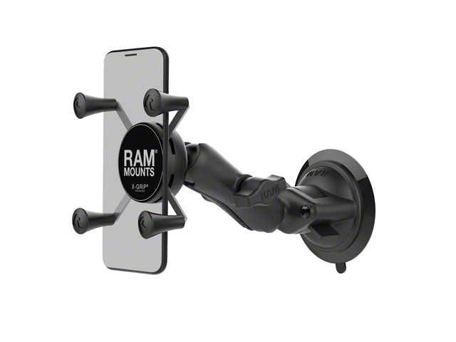Application. The RAM Mounts X-Grip Phone Mount with Twist-Lock Suction Cup offers a universal fitment.