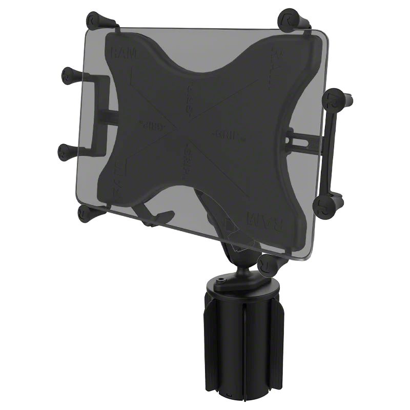 Description. The RAP-299-3-UN9U consists of the RAM-A-CAN™ cup holder base, double socket arm and universal X-Grip cradle. Included are support fins that flex and can be trimmed, making the cup holder base conform to most vehicle cup holders. The mount is designed with a RAM 1" diameter patented rubber ball and socket system that has adjustment points at both ends of the double socket arm, allowing for almost infinite adjustment and perfect viewing angles. The X-Grip cradle is compatible with handheld devices that will fit the dimensions listed below. It is important to verify the dimensions of your handheld device with a case/sleeve/skin when determining the overall size.