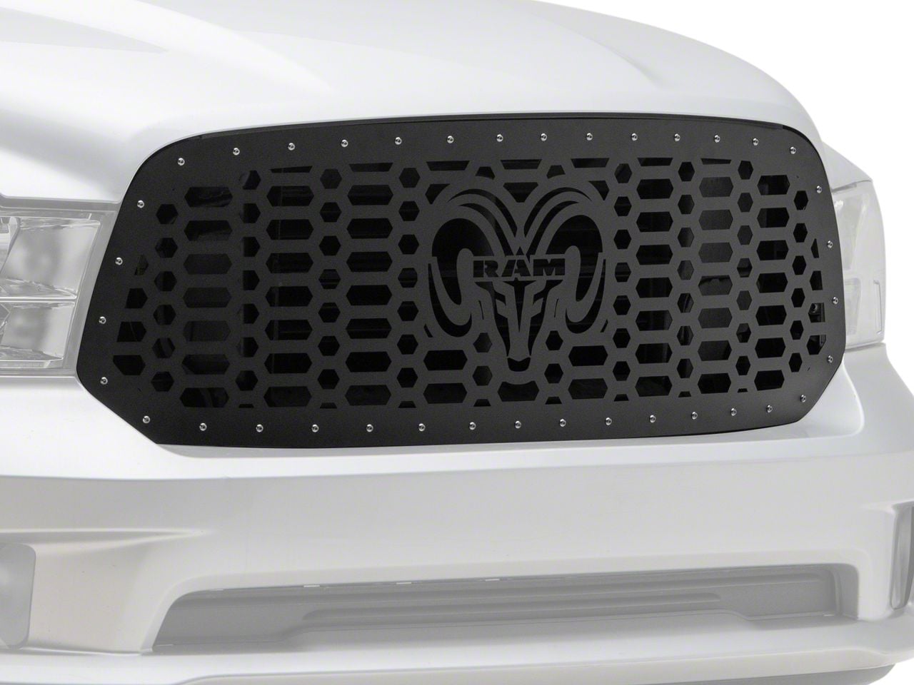 Application. The 1-Piece Steel Upper Replacement Grille; Ram Head fits all 2013-2018 Dodge RAM 1500 models except Rebel models.