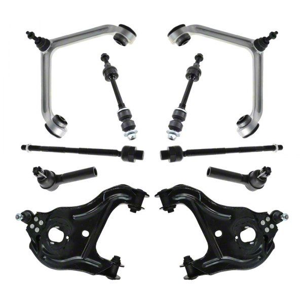 Chassis Enhancement. The 10-Piece Steering and Suspension Kit is designed for front applications, focusing on intensive chassis improvements and replacement components. It enhances sharper turning quality and reduces wheel sway, making it a crucial upgrade for handling performance.