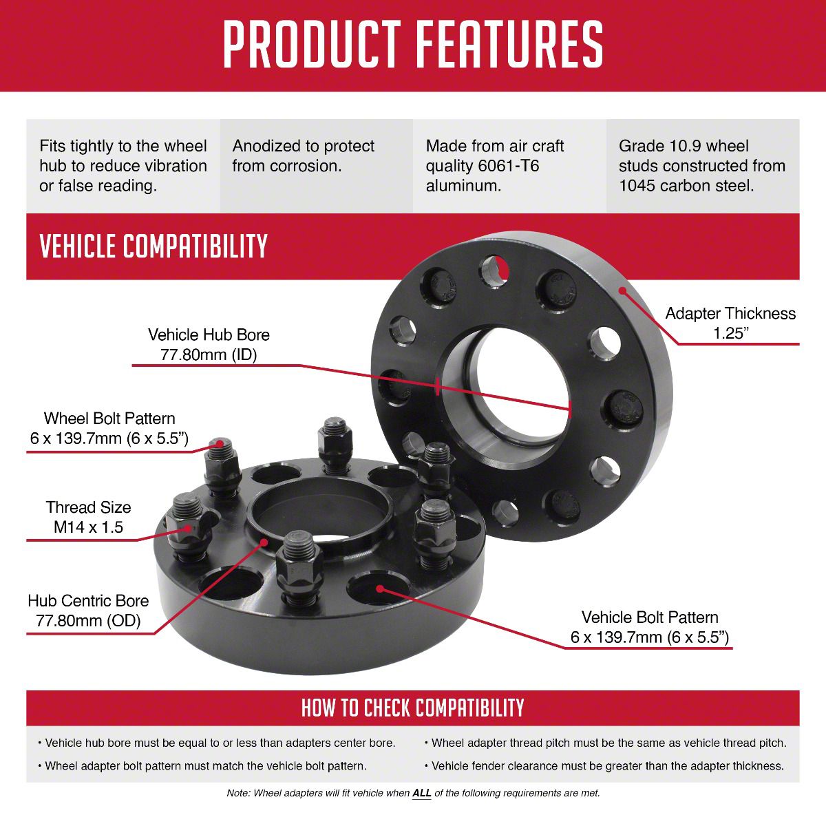 Application. The 1.25-Inch Billet Aluminum Hubcentric 6-Lug Wheel Spacer fits 2019-2026 RAM 1500 models.