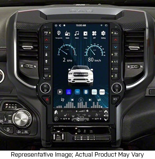 Application. This 13.60-Inch Android 10 Vertical Screen Navigation Radio in Silver/Chrome fits all 2019-2021 RAM 150 models.