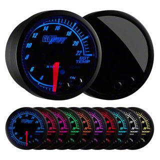 This 2-1/16" (52mm) exhaust temperature gauge offers incredible features that include, a peak recall function, programmable high and low warning functions, stepper motor technology, 10 color through dial LED lighting, as well as a self-calibration mode at startup, an illuminated red needle, and a low profile magnified tinted lens. The adjustable high and low warning functions will alert you visually or with an optional audible tone, ensuring your vehicle’s exhaust temperature is not running too high, and the peak recall ability gives you an instant vehicle assessment. The included stepper motor ensures all needle movement is incredibly smooth and all gauge readings are extremely accurate. GlowShift’s 10 color through dial lighting lets you match your stock gauges or add a unique look to your vehicle's interior, and with the color recall feature you never have to worry about resetting the gauge to your preferred color every time your vehicle is turned on. This EGT gauge will also dim 30% when connected to your factory headlight switch, making it easy to read while driving at night.