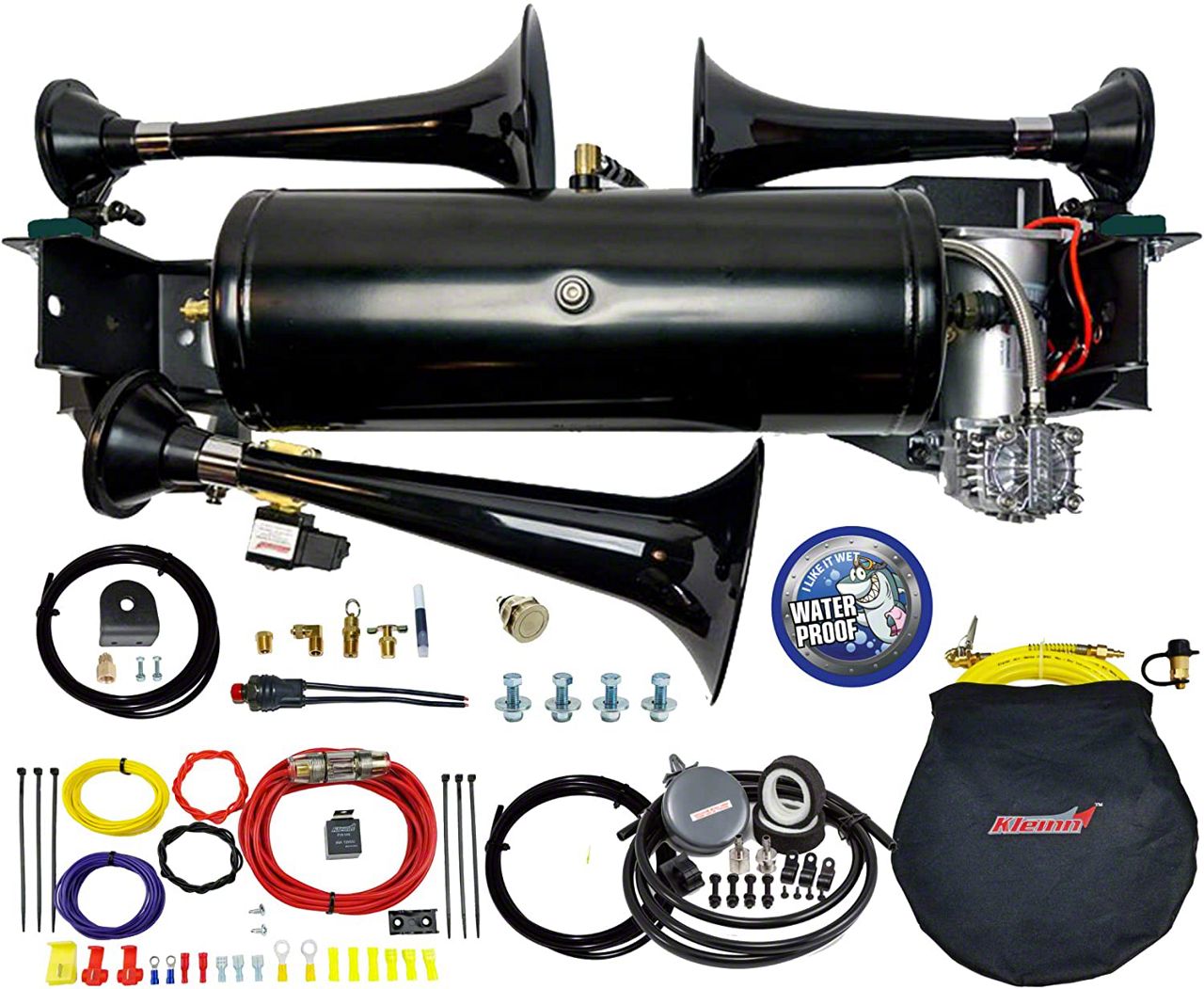 Straightforward Installation. This kit’s compressor, air tank, and air horns assembly are designed to mount onto preexisting locations on your truck’s underchassis area. Minor drilling may be necessary for certain applications. Also, you will need to perform some wiring work to connect this system’s powered components with your electrical system. Other than these steps, installation is completed using just standard hand tools and the included mounting hardware.