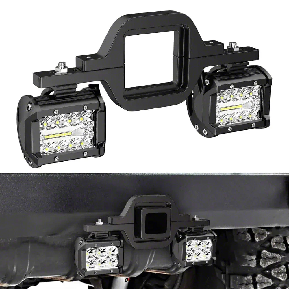 Enhanced Rear Lighting. The Tow Hitch Mount Bracket with LED Pod Lights provides added illumination and safety for vehicles equipped with a tow hitch. Designed with functionality in mind, it combines a sturdy bracket and powerful lighting to improve rear visibility in low-light conditions. This set features a universal fit, making it compatible with a wide range of vehicles requiring a 2-Inch type bracket.