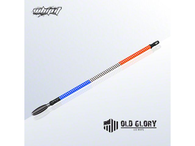 Experience unmatched brightness and patriotic illumination with our Super Brite Old Glory LED Whips. Designed to outshine the competition, these whips feature an impressive array of LEDs that display stunning red, white, and blue brilliance. Engineered for both visibility and style, they ensure you command attention on rugged trails or beneath the night sky. With ultra-bright LEDs, they provide exceptional brightness, making you visible from great distances. Crafted with custom stainless steel barrel springs and 1/2" thick fiberglass rod, these whips are built to endure the toughest conditions, Elevate your off-road adventures with confidence by upgrading to our Super Brite Old Glory LED Whips today. Note: Does not include a remote. Must use a rocker switch for on/off control.