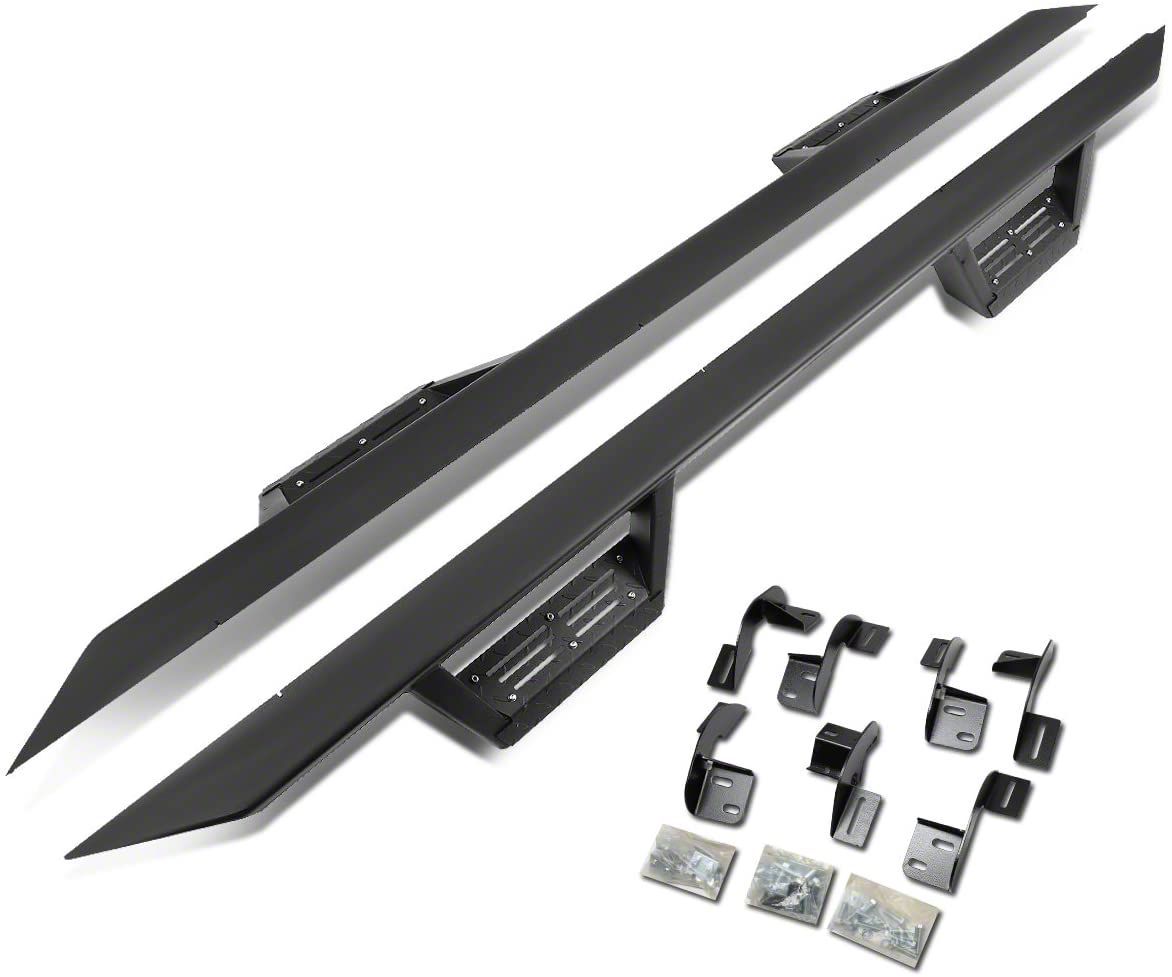 Construction and Appearance. Crafted from heavy-duty aluminum, these step bars are durable and rust-resistant. They feature a sleek black powder-coat finish that enhances the look of your vehicle while providing extra protection against the elements.