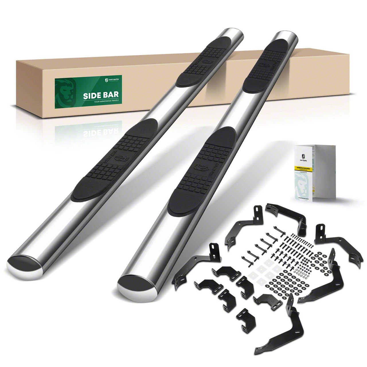 Reliable Step and Sleek Protection. These 4-Inch Oval Straight Side Step Bars offer a secure and stylish step for easier access into your vehicle. Designed to enhance functionality while boosting the exterior appearance of your truck, these bars also offer added side protection from parking lot hazards. Built specifically for your Dodge RAM, they bring practical convenience and rugged durability to your ride.