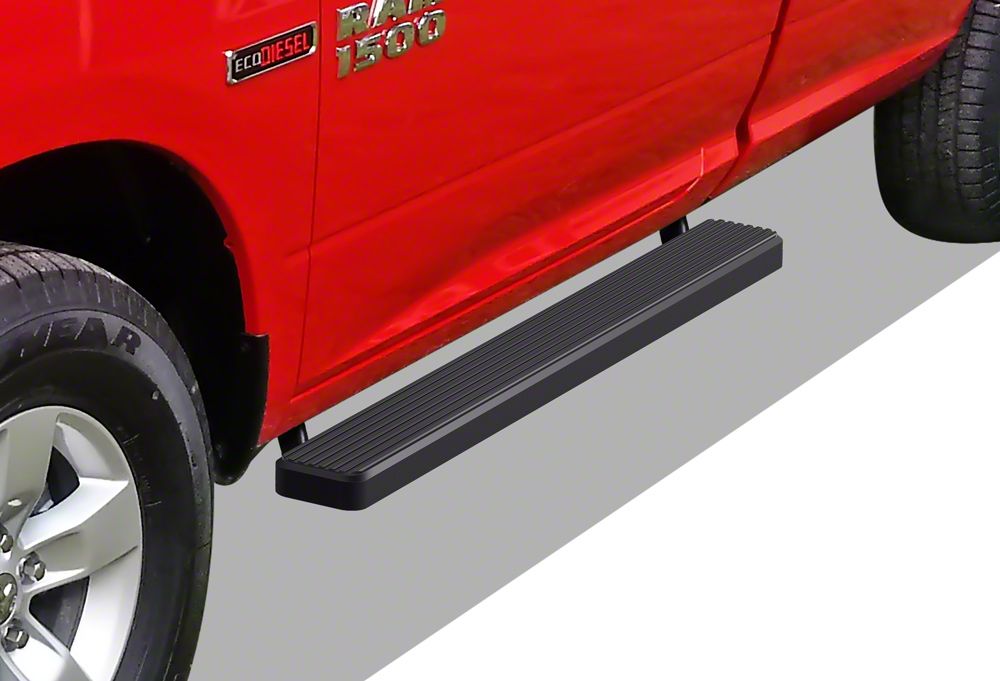 Convenient. The RAM 1500 Regular Cab is much easier to get in and out of thanks to the 5-inch iStep running boards. This is especially helpful for kids, senior citizens, or anybody with mobility impairments who might find it difficult to climb into the vehicle. By serving as a step in between, the running boards help to close the height difference between the ground and the vehicle's cab.