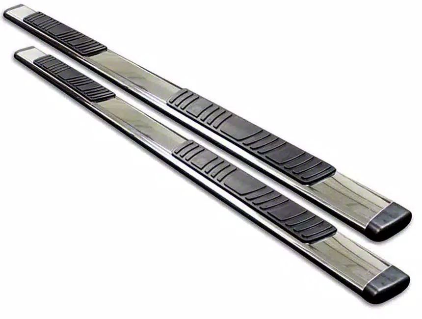 Construction and Appearance. Constructed from high-quality stainless steel, these side step bars are built for durability and long-lasting performance. The low-profile design and SuperGrip rubber step pads ensure a stylish appearance and secure footing, even in wet conditions.
