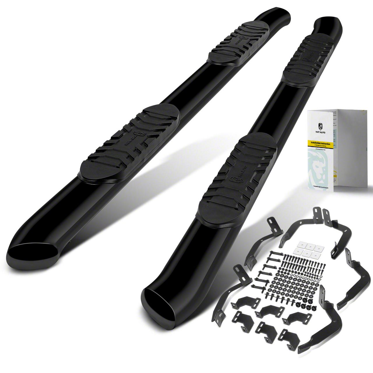 Installation. These side step bars install as a direct replacement using the included mounting brackets and hardware. Each set comes with detailed installation instructions to guide the process. No drilling is typically required, making it a straightforward upgrade using common tools and mounting locations on the vehicle’s frame.