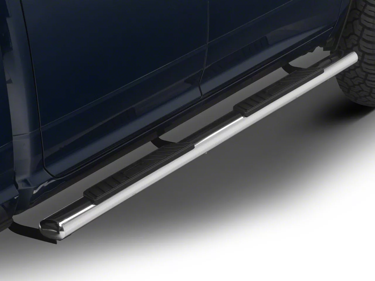 Construction and Appearance. Constructed from premium stainless steel, these 5-Inch Straight Nerf Side Step Bars are durable and rust-resistant. They feature an eye-catching mirror-polished stainless steel finish that not only looks great but also withstands the elements.