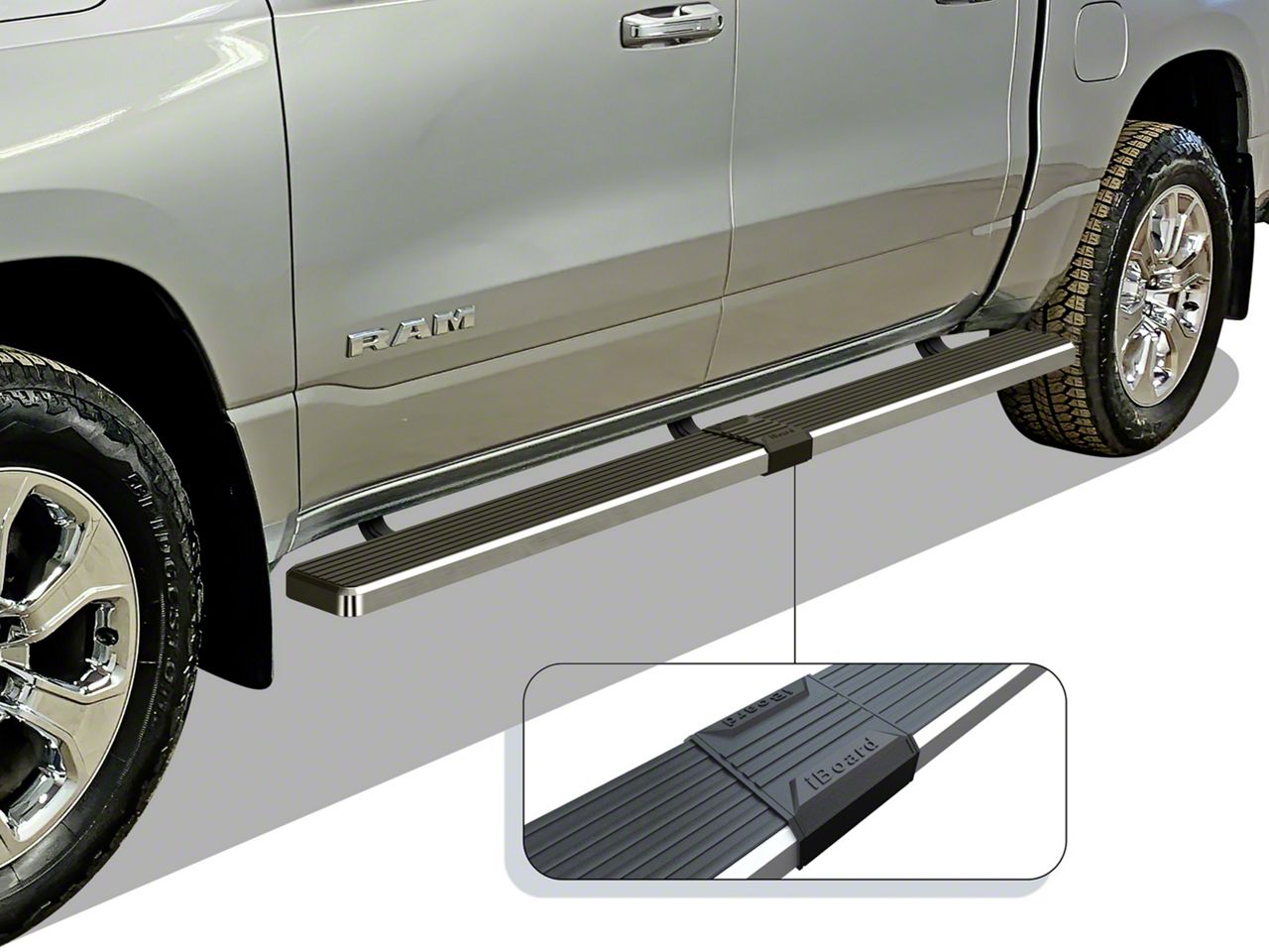 Full-Length Function and Style. The Six-Inch iStep Wheel-to-Wheel Running Boards provide secure and stylish access to both the cab and bed of your RAM 1500. With a flat, wide step surface and sleek hairline silver finish, they enhance convenience and upgrade your truck's overall appearance.