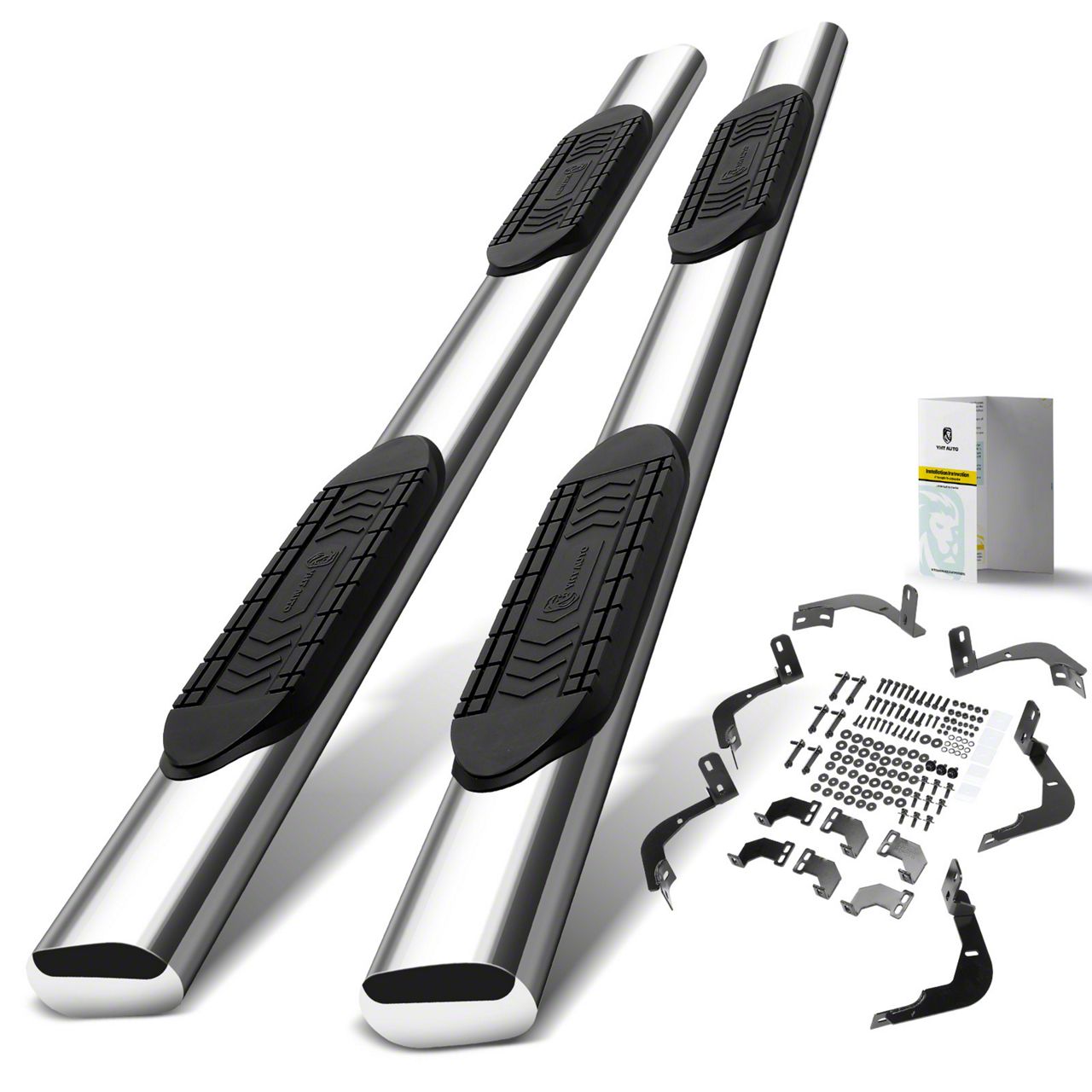 Construction and Appearance. These side step bars are robustly constructed using high-quality 304 stainless steel, known for its resistance to rust and corrosion. Featuring a chrome finish, they add a stylish and polished look to your vehicle while offering long-lasting durability. The precise measurements ensure a seamless fit that meets or exceeds OEM specifications.