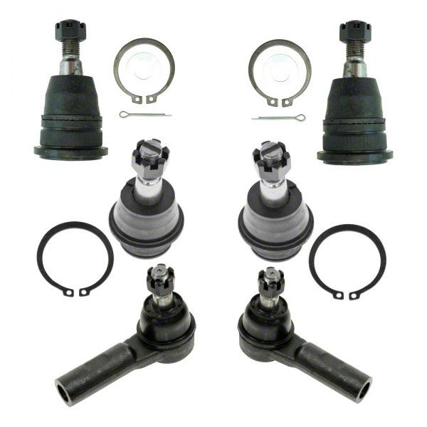 Complete Suspension Solution. The 6-Piece Steering and Suspension Kit provides all essential components needed to restore front steering and suspension functions, enhancing vehicle control and safety. It is designed for rebuilding or repairing the front end to deliver optimal road feel and handling.