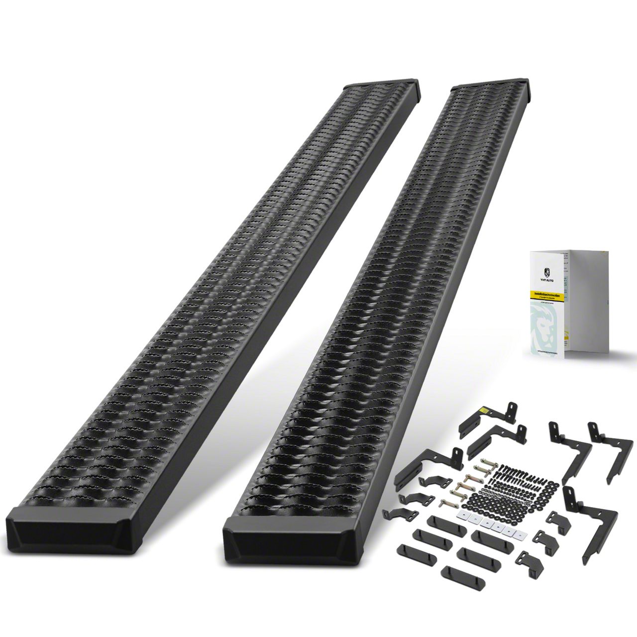 Installation. Installation is straightforward and requires minimal effort thanks to the included mounting brackets and hardware. These running boards attach directly to the rocker panels using factory mounting points, ensuring a secure and precise alignment.
