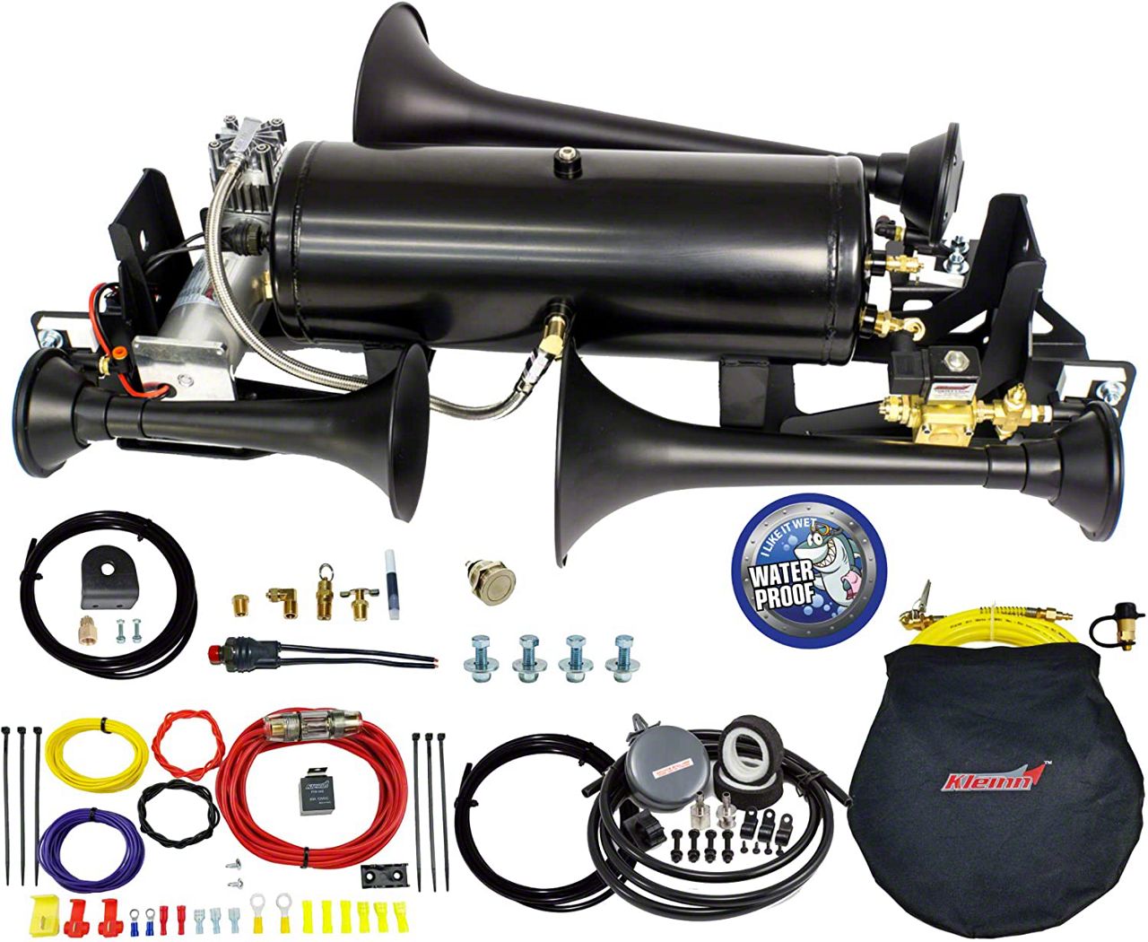 Impressive Air System. This air system features high-quality components that improve your driving experience. It comes with a 6450RC high-capacity waterproof air compressor that has a 150 PSI and 100% duty cycle. It also features a 3-gallon air tank with Cortec™ interior and an anti-corrosion coating. What’s more, it boasts a 730 Demon™ black spun steel triple train horn that produces an ear-shattering sound.