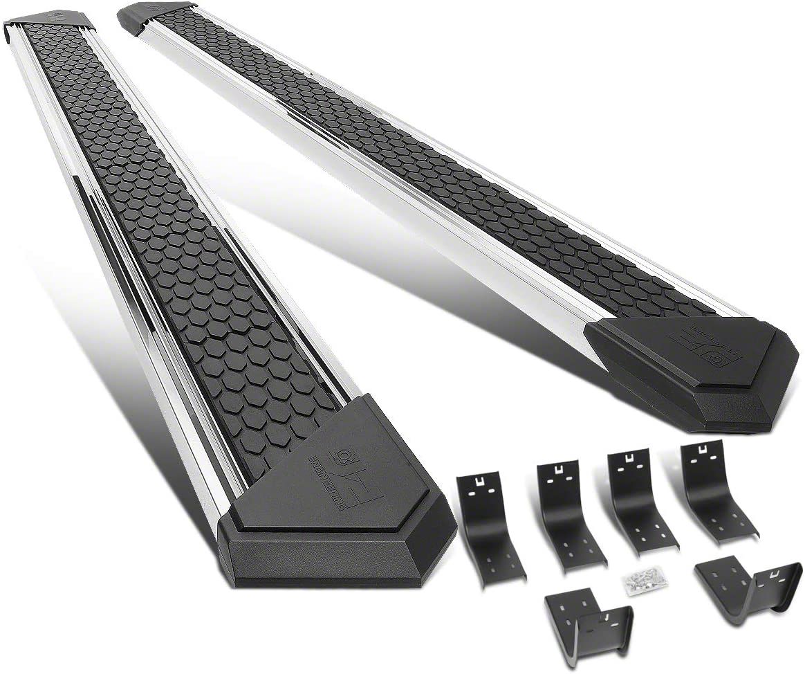 Description. Crafted From High Quality Rust-Resistant Stainless Steel. Polished Surface Finish.Package Includes a Complete Set of Running Boards (Left & Right Side). Raised Honeycomb Patterned Anti-Slip Step Pad. J2 Logo ABS Plastic End Caps. 500Lb Weight Capacity. All Necessary Brackets and Hardware Included for a Complete Installation.Vehicle Specific Mounting Brackets Included. Body Mount Style Brackets. 8" Wide Flat Steps Designed for Your Comfort and Safety.