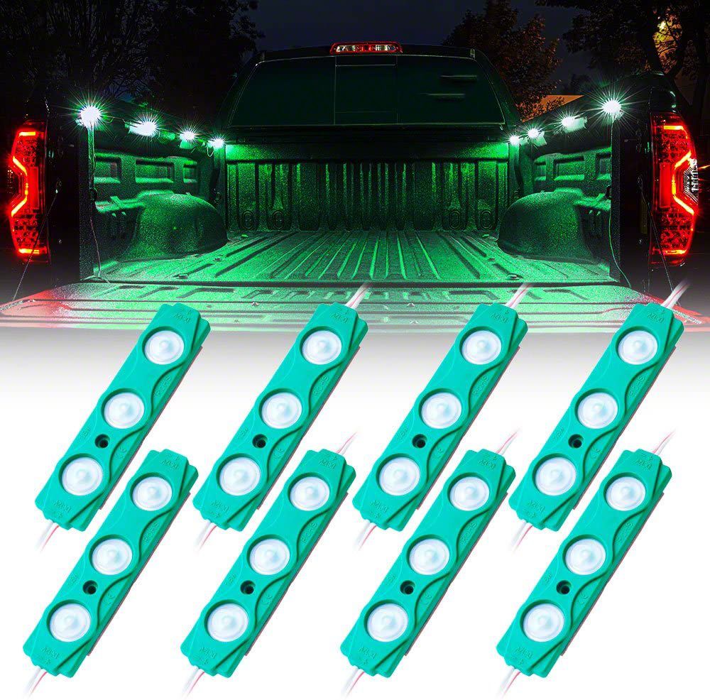 Eye-Catching LED Lighting Equipment. Add an eye-catching appeal to your truck with this Green 8-LED Rock Light Pod Truck Bed Lighting Kit. Designed with user-friendly features, this lighting equipment is quick and simple to install anywhere you need it on your vehicle.