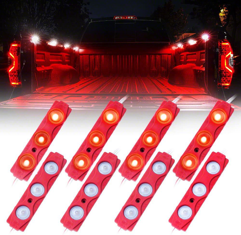 Remarkable LED Light Pods. Make your truck look more stunning with this Red 8-LED Rock Light Pod Truck Bed Lighting Kit. Designed as decorative lighting equipment, this light pod kit also provides some visibility so you can see the contents of your truck’s bed at night.