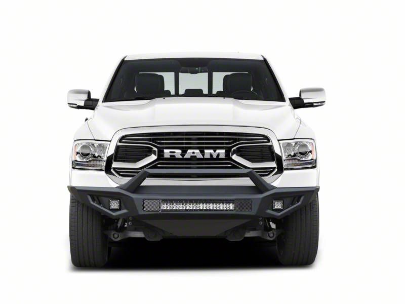 Impressive Front Bumper Upgrade. Take your RAM 1500’s off-road-ready setup to the next level by installing this Armour II Heavy Duty Front Bumper with 20-Inch LED Light Bar and 4-Inch Cube Lights. This high-quality front bumper offers a more durable and long-lasting performance, keeping your front-end components safe from trail damage.