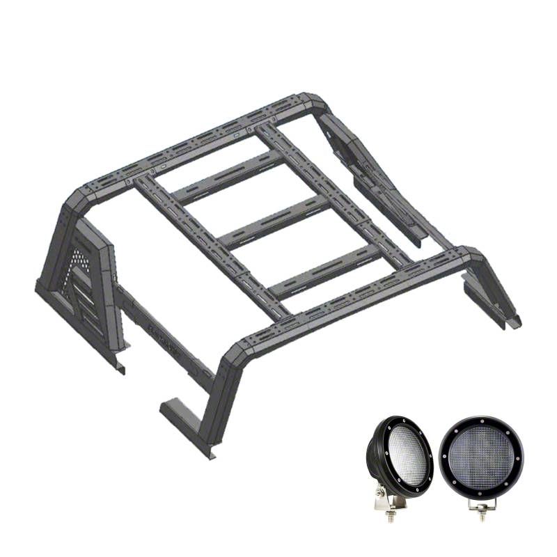 Armour II Roll Bar Overland Kit with 5.30-Inch Black LED Flood Lights; Black (15-26 RAM 1500 w/o RAM Box)Find parts that fit my vehicle