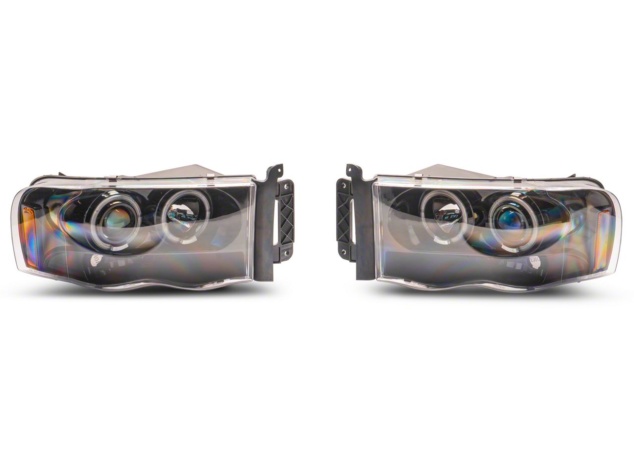 Application. The Black Dual Halo Projector Headlights are specifically designed to be used on 2002-2005 RAM 1500 models. Driver and passenger side included.