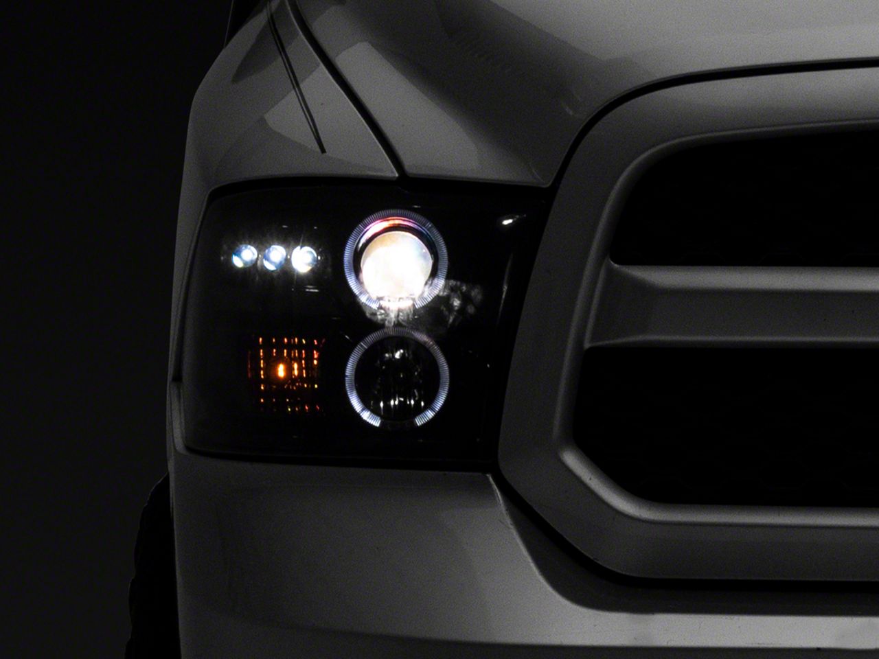 Application. These Black LED Halo Projector Headlights are designed to fit 2009-2018 RAM 1500 models that are not equipped with Projector Headlights from the factory.