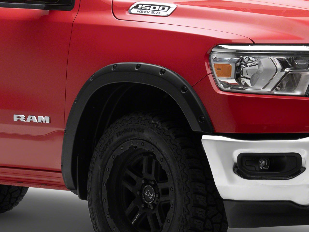 Enigmatic Flares. Introducing the Bolt-On Style Fender Flares. These fender flares are OEM approved and easy to install with no drilling required. They're made of rigid ABS material and are UV protected and weather-resistant. With a lightly textured finish, they are sure to give your RAM an enigmatic exterior appearance.