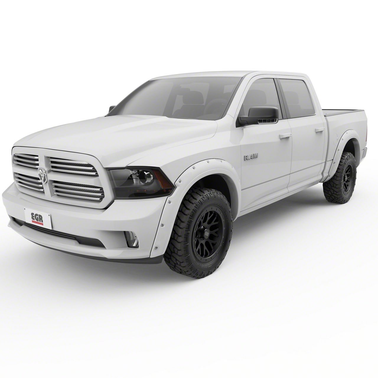 Bright White Aesthetic. These EGR Bolt-On Style Fender Flares are designed to fit all 2011-2018 RAM 1500 Sport Models and are finished in a bright white finish to match your vehicle's rugged aesthetic. The bolt-on style ensures easy installation, and the flares provide additional tire coverage, protecting your vehicle from rocks, debris, and other road hazards.