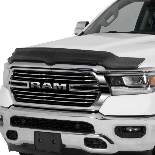 Application. This Buggard with Carbon Fiber Look hood deflector is designed to be used on all the 2019-2024 RAM 1500s, excluding TRX models.