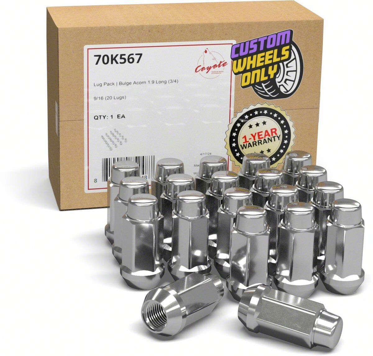 Reliable and Secure Wheel Fastening. The Bulge Acorn Chrome Lug Nut Kit is designed to provide a secure and precise fit for your RAM 1500's wheels. With a bulge acorn style, these lug nuts ensure even contact with the wheel seat for improved stability and safety.