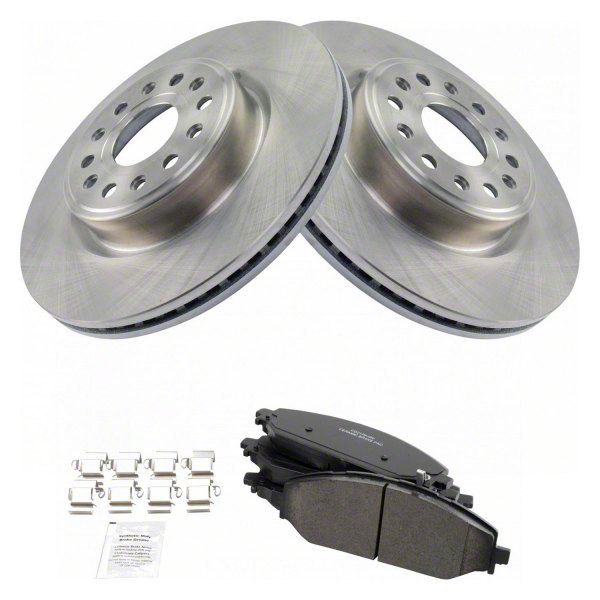 Reliable Street Stopping. Take control of your RAM 1500's performance with the Ceramic 6-Lug Brake Rotor and Pad Kit; Front. This comprehensive kit offers an exceptional balance of longevity, performance, and noise reduction for a superior driving experience. These pads are engineered for exceptional durability and a high coefficient of friction, delivering outstanding stopping power and reducing brake fade. The ceramic compound is also designed to produce less brake dust and noise, ensuring a cleaner, quieter ride.