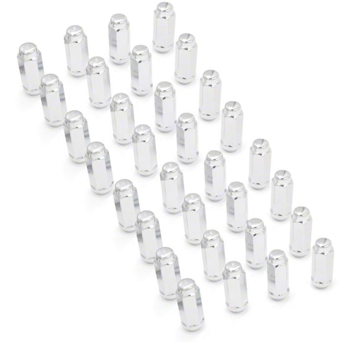 High-Quality Acorn Styling. Give your work truck an even more aggressive appeal with this Chrome 7/8-Inch XL Acorn Lug Nut Kit; 9/16-Inch; Set of 32. These lug nuts feature a bulge acorn styling and chrome plating that enhance the look of your vehicle. Meanwhile, their premium quality provides you with years of reliable performance, giving you peace of mind no matter where the roads may lead you.