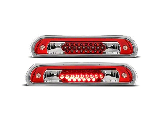 Intense Red and White LED Bulbs. This Chrome LED Third Brake Light uses LED light bulbs for more intense lighting. This 3rd brake lighting unit uses both red and white-colored lights. The red lights function as standard brake warning while the white lights double as truck bed lighting, enabling safer bed access.
