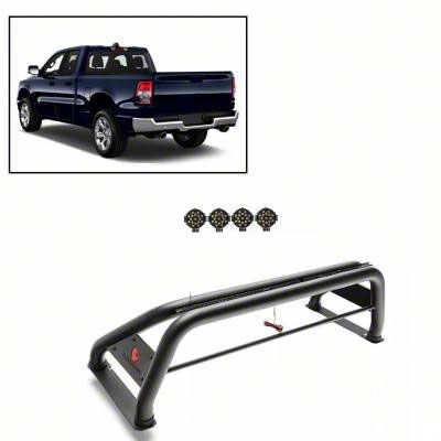 Strength and Function. Add more brawn to your RAM with the Classic Roll Bar with 7-Inch Black Round LED Lights (Black). This roll bar is custom-made for precise fitment on your truck and allows you to install 7-inch round flood black LED lights for maximum illumination during nighttime driving. This roll bar also protects you and your passengers in case of a rollover.