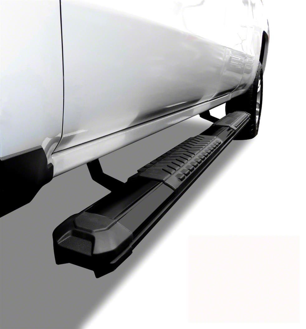 Bold and Reliable. Constructed from premium corrosion-resistant aluminum, these Cutlass Running Boards are ready for the off-road rigors. These step boards are covered in a durable black finish for added protection from corrosion and scratches while offering easy maintenance. The 5-inch footpads are designed to provide improved all-weather gripping surfaces. Heavy-duty mounting brackets are also included for a secure attachment that supports each running board to hold a 350-pound capacity. Moreover, the pre-installed black end caps and step pads complete the distinctive boldness provided by the all-black assembly.