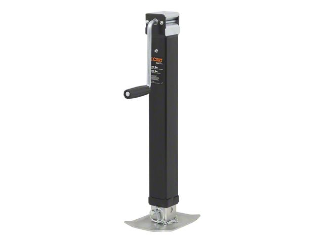 Capacity of 8,000 Pounds. Made for a universal fit, this Square Trailer Jack comes in a matte black finish. Built with side handles and a directly welded construction, this trailer jack has 15 inches of vertical travel and has a weight capacity of 8,000 pounds.