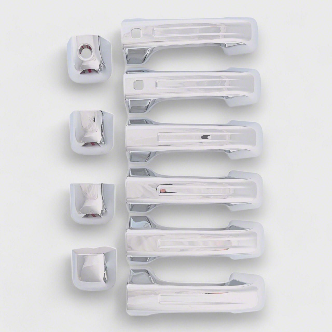 Optimum Functional Design. Door Handle Covers are a great way to keep your door handles looking new and shiny! Made from high-quality ABS plastic, these covers snap on for a perfect fit and protect your door handles from getting scratched or dirty. They also have a pre-cut opening for any keyholes, so you can use your smart key with ease. On top of that, they come in a chrome finish that will complement any style.