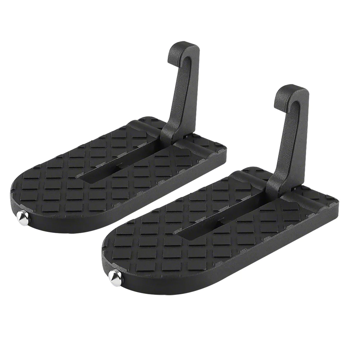 Construction and Appearance. Constructed from high-quality aluminum alloy, these steps are engineered for strength and long-term durability. Each unit features a textured black finish that not only resists wear and corrosion but also adds a sleek, modern look. The anti-skid surface ensures reliable traction, while the soft cushion prevents scratches on your vehicle’s door frame.