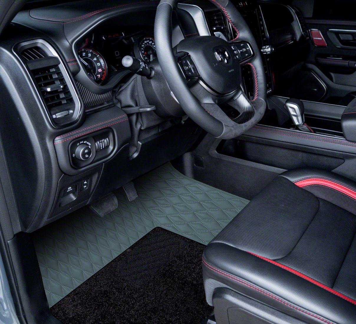 Double Layer Diamond Front and Rear Floor Mats; Base Full Gray and Top Layer Black (19-24 RAM 1500 Quad Cab w/ Front Bucket Seats & Rear Underseat Storage)Find parts that fit my vehicle